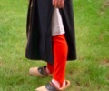 Beinlinge fertige ich nur aus Wollstoff (schräg zum Webmuster), sind natürlich genau auf Maß zugeschnitten, enden hinten unterm Po, vorne mit einer Spitze auf Gürtelhöhe.