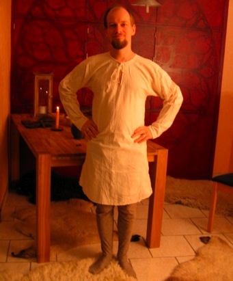 Knie- bis wadenlang, lange gerade geschnittene Ärmel, Geren an den Seiten, auf Wunsch Tunnelzug mit Bändchen am Handgelenk